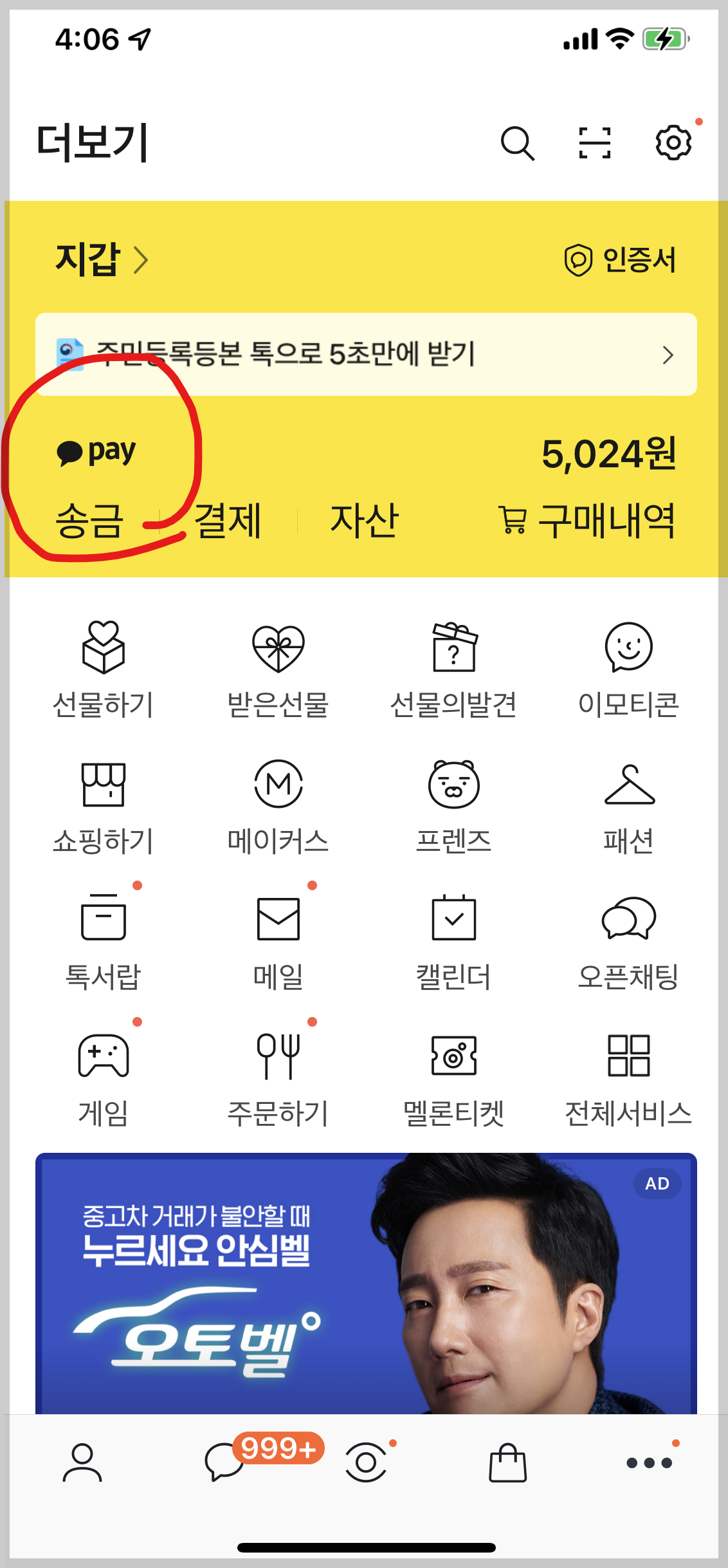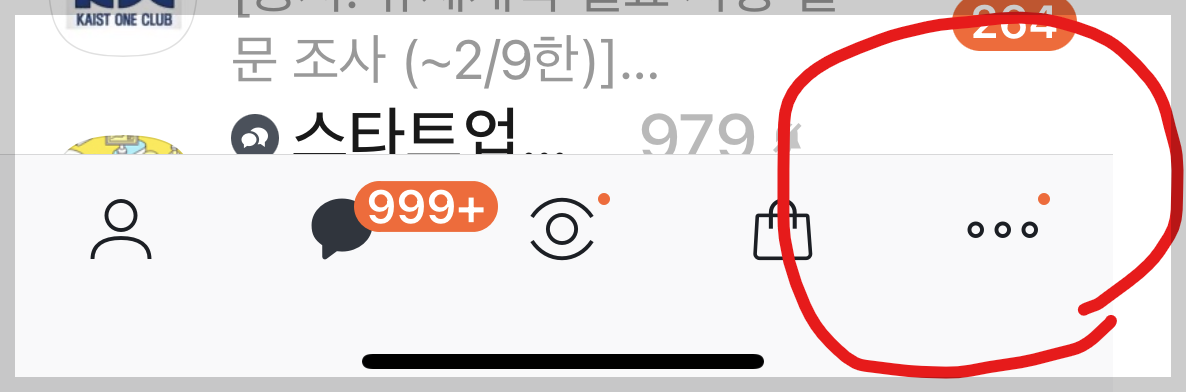 (1) 카카오톡 앱을 열고 하단의 '...'을 터치합니다.