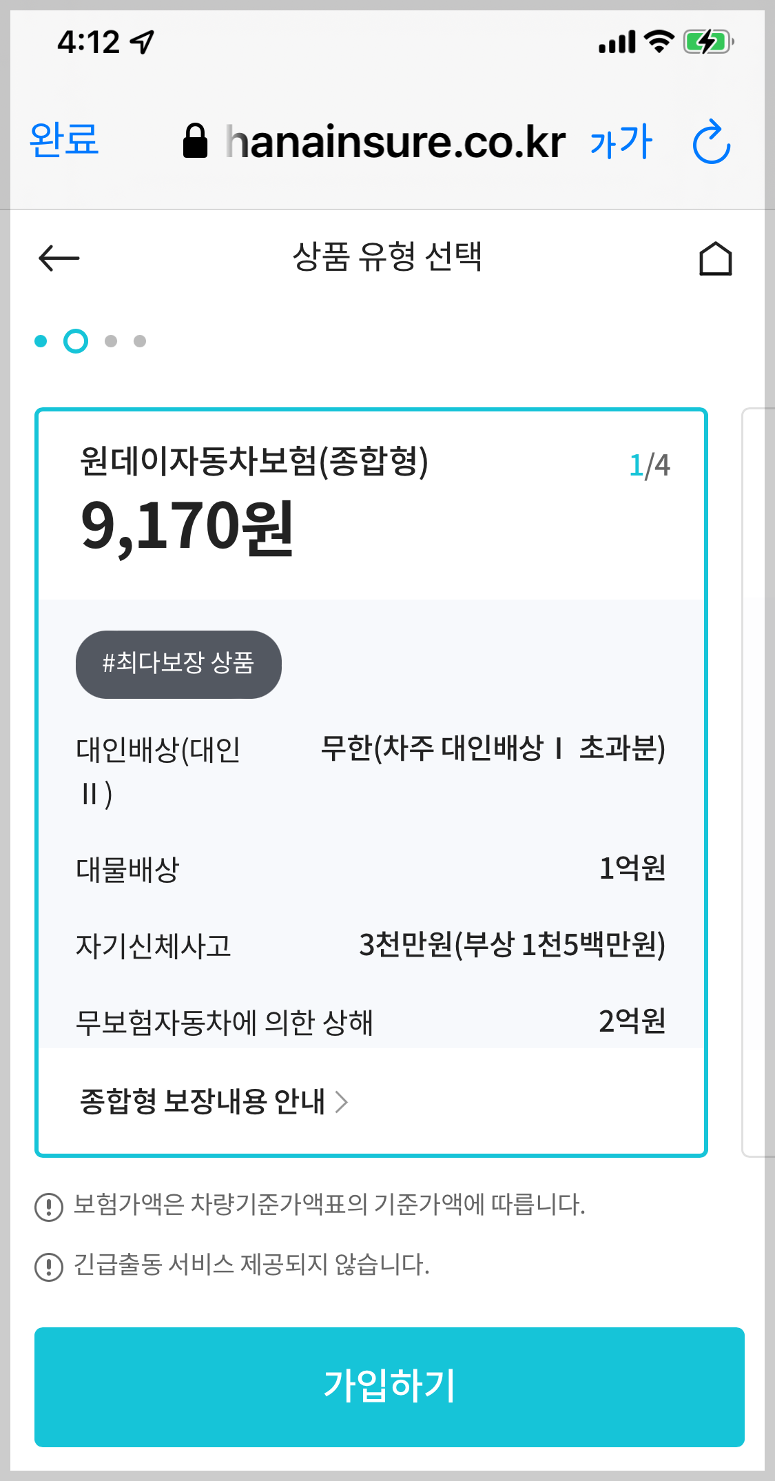- 원데이자동차보험 - 자기차가 있으면 가입이 불필요합니다.
